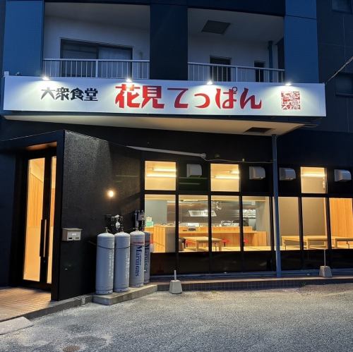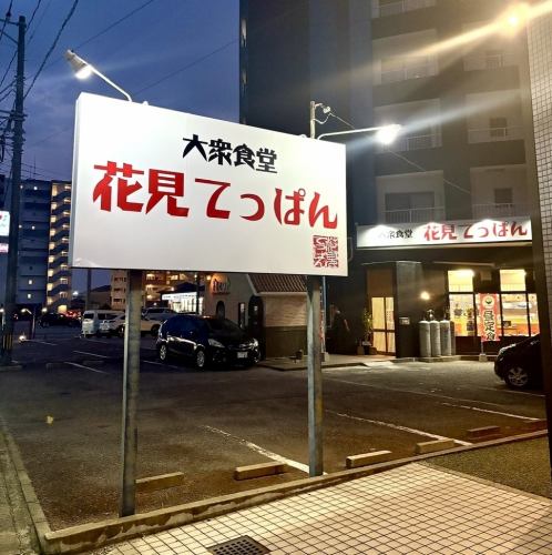 「大衆食堂 花見てっぱん」の看板が当店の目印です!