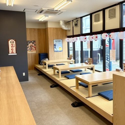 広々と大衆的な雰囲気の店内!全面ガラス張りの入りやすい雰囲気なので、おひとり様でもお気軽にどうぞ!